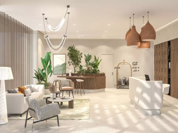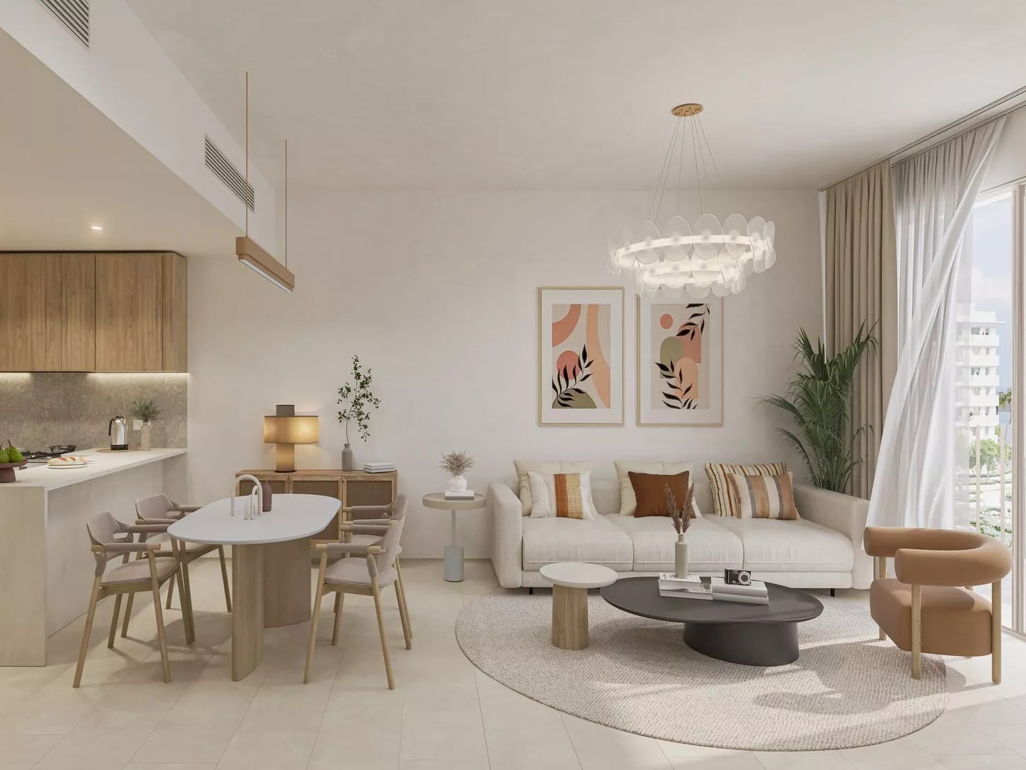 The apartment features a well-designed layout with bright interiors, modern finishes, and large windows that allow natural light to flow throughout the living space. The open-plan living and dining area creates a welcoming atmosphere, while the bedroom offers comfort, privacy, and efficient use of space. High-quality materials, stylish flooring, and elegant fixtures reflect the development’s premium standards.