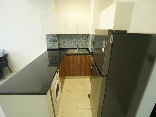 Both bedrooms are generously sized, offering privacy and comfort for families or professionals. Premium flooring, elegant fixtures, and contemporary detailing throughout the apartment reflect the development’s commitment to quality living standards.