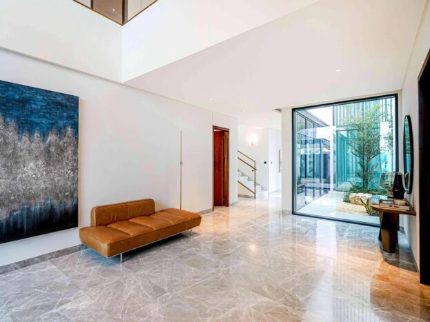 The villa features a spacious, well-balanced layout with expansive living and dining areas, floor-to-ceiling windows, and elegant architectural details. High-quality finishes, modern fittings, and thoughtfully designed interiors enhance both comfort and functionality. The bedrooms are generously sized, offering privacy and relaxation, while outdoor spaces allow residents to enjoy the natural beauty of Saadiyat Island.