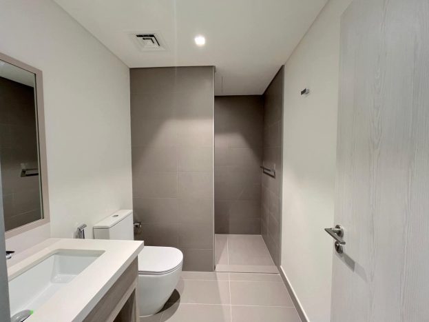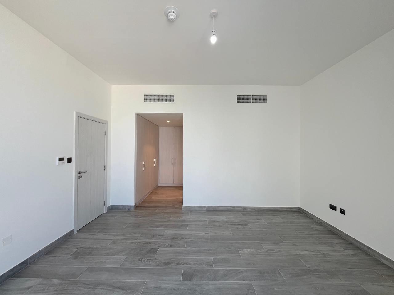 The interiors reflect a clean modern aesthetic, with high ceilings, expansive windows, and open-plan designs that invite natural light throughout. Each bedroom comes with built-in wardrobes and premium finishing, while the master suite includes a private balcony overlooking the beautifully landscaped community.