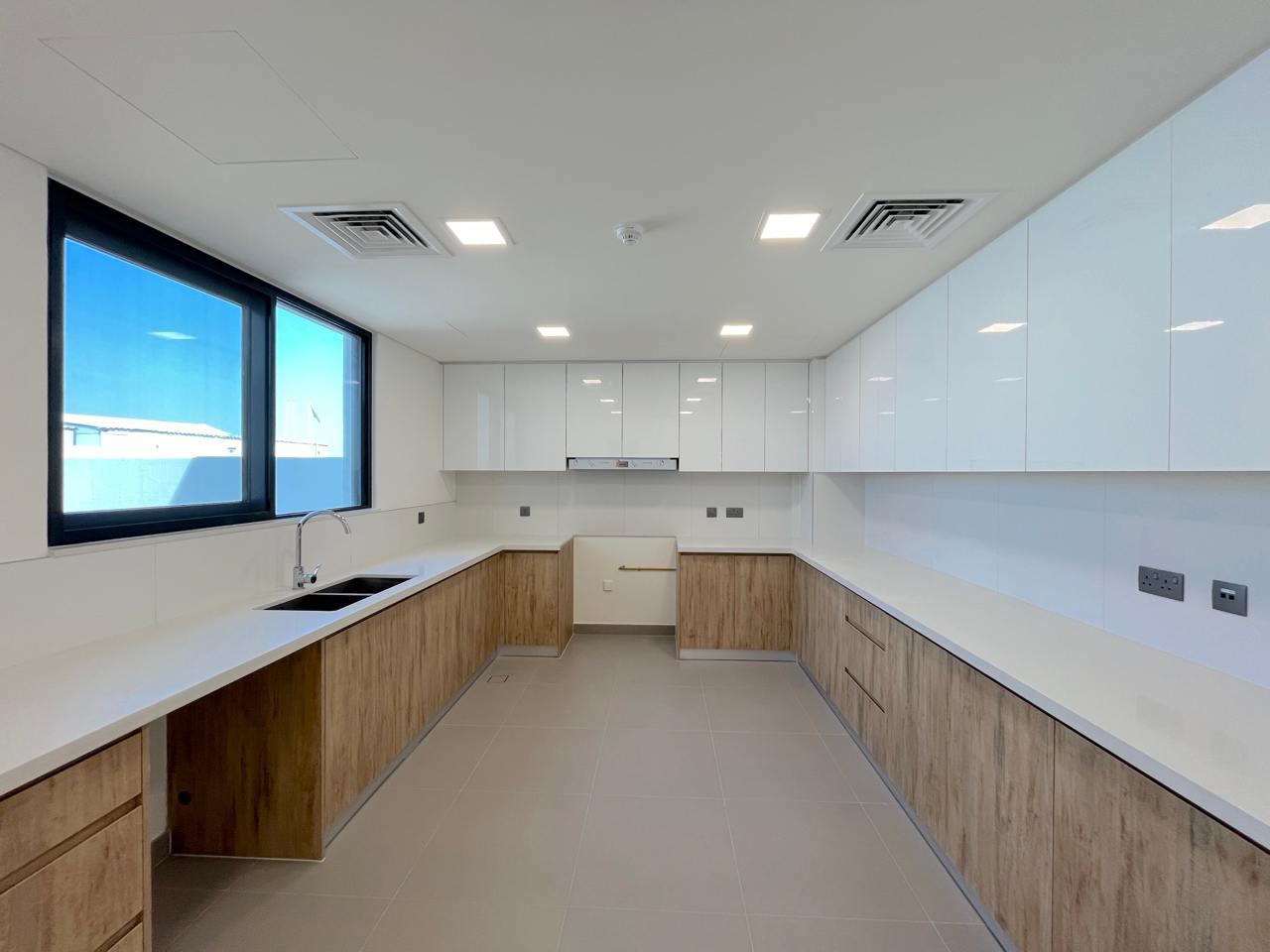 The kitchen is modern, fully fitted with high-quality cabinetry and ample storage, making it ideal for family use. The villa also includes a maid’s room and covered parking, ensuring a complete and convenient living experience.