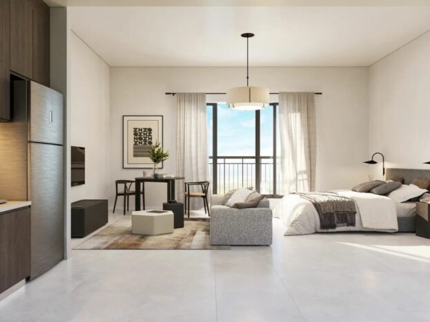 Situated within proximity to Yas Mall, Yas Marina, Ferrari World, and top golf courses, the community ensures residents enjoy both convenience and leisure. The development offers a diverse selection of units including studios, 1-bedroom, and 2-bedroom apartments, all designed with modern layouts, high-quality finishes, and expansive windows to maximize natural light.
