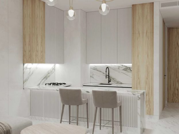 The apartment features a spacious layout with a bright living and dining area that benefits from large windows and abundant natural light. The bedroom is well-sized, offering comfort and privacy, while the modern kitchen is designed with high-quality fittings and practical storage. Thoughtful interior design ensures efficient use of space, making the apartment ideal for everyday living.