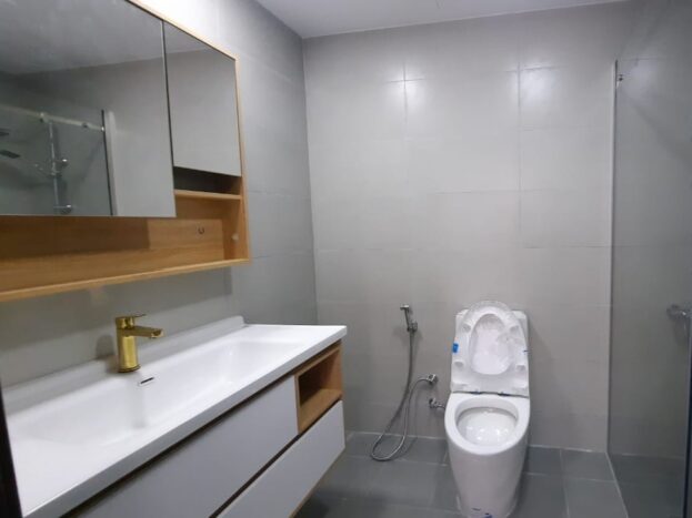The kitchen is well-designed with functional cabinetry and quality finishes, providing a practical and stylish cooking environment. The apartment’s elegant design, combined with its open and airy layout, creates a welcoming home within a vibrant urban setting.
