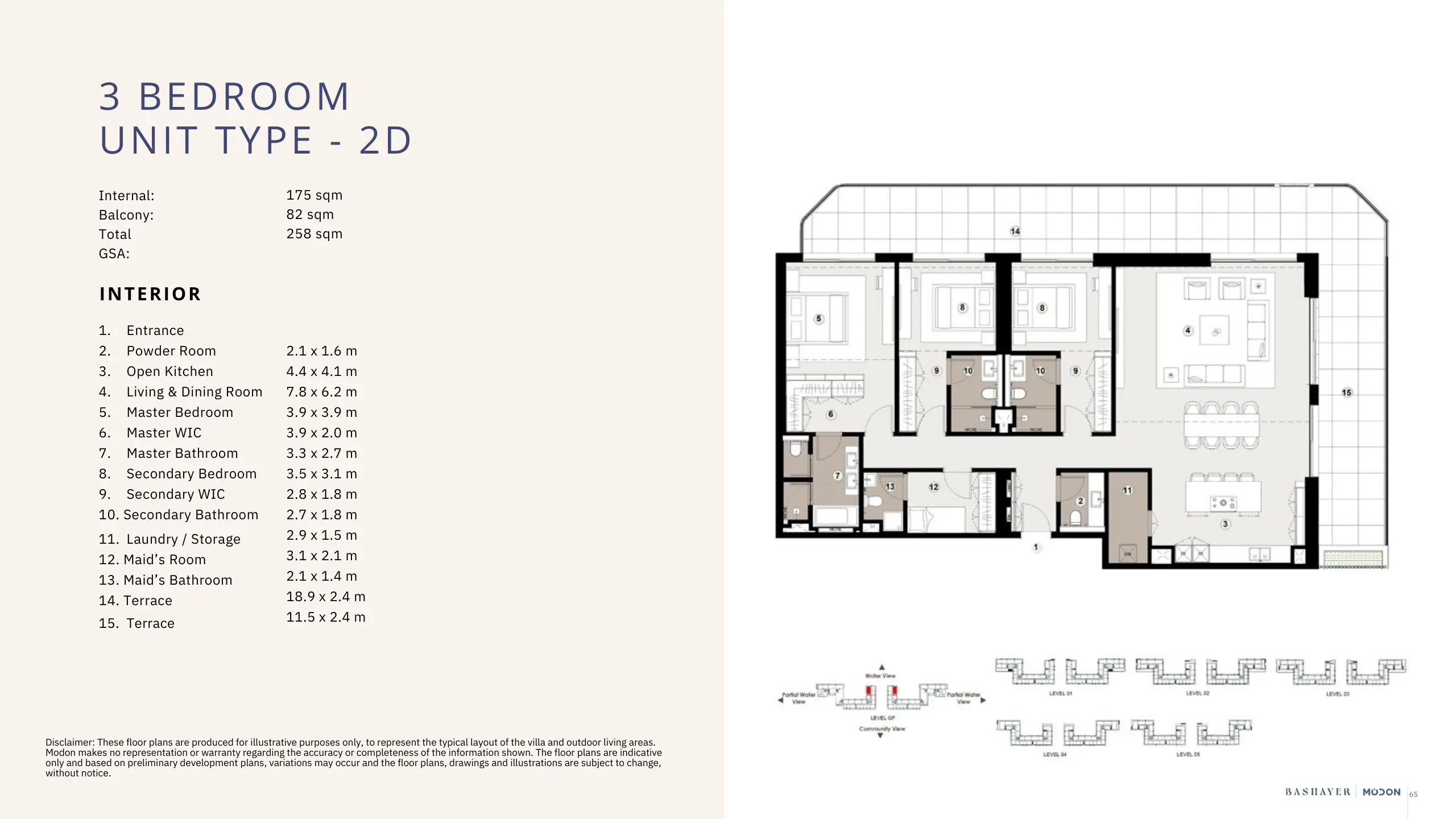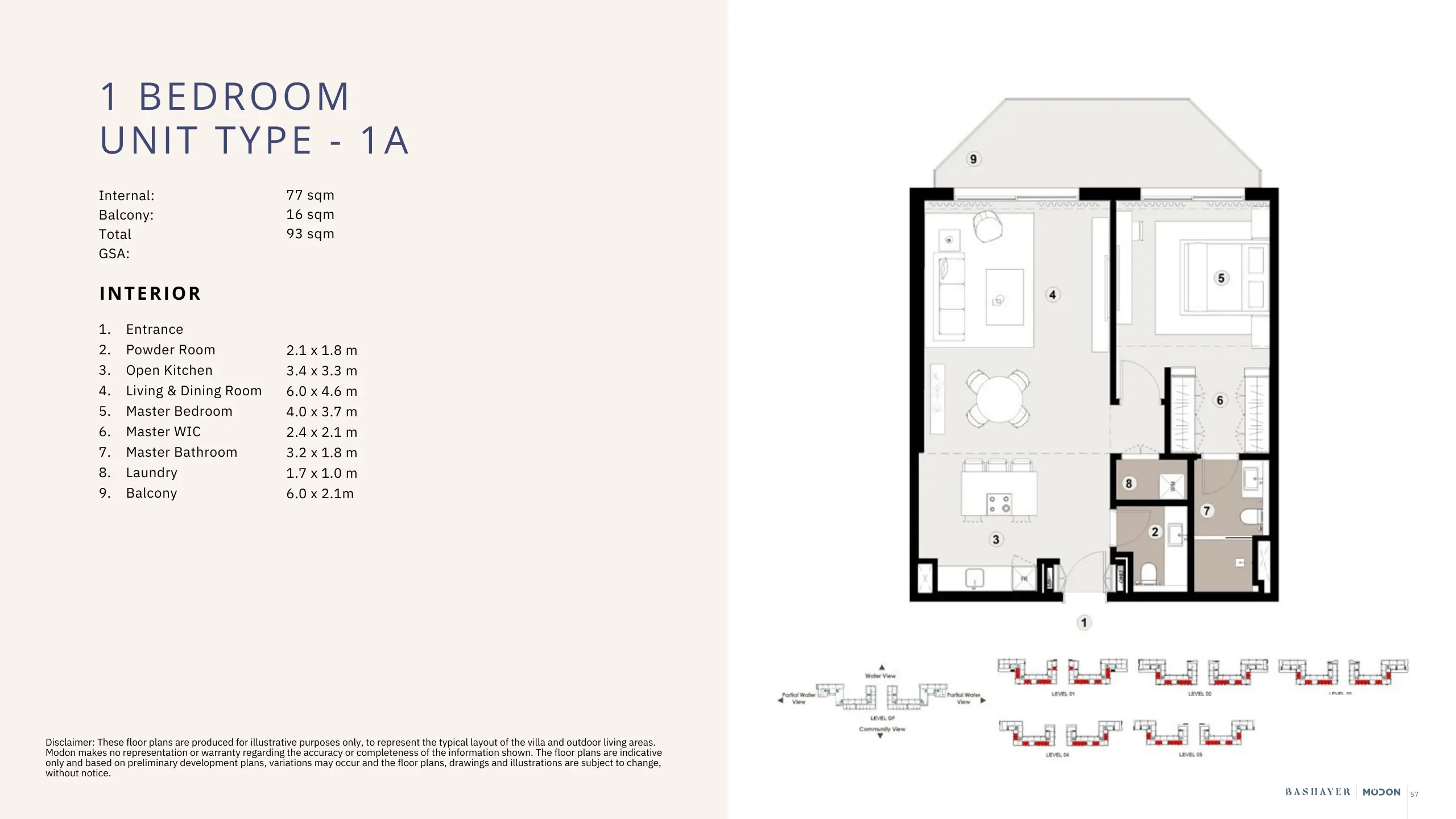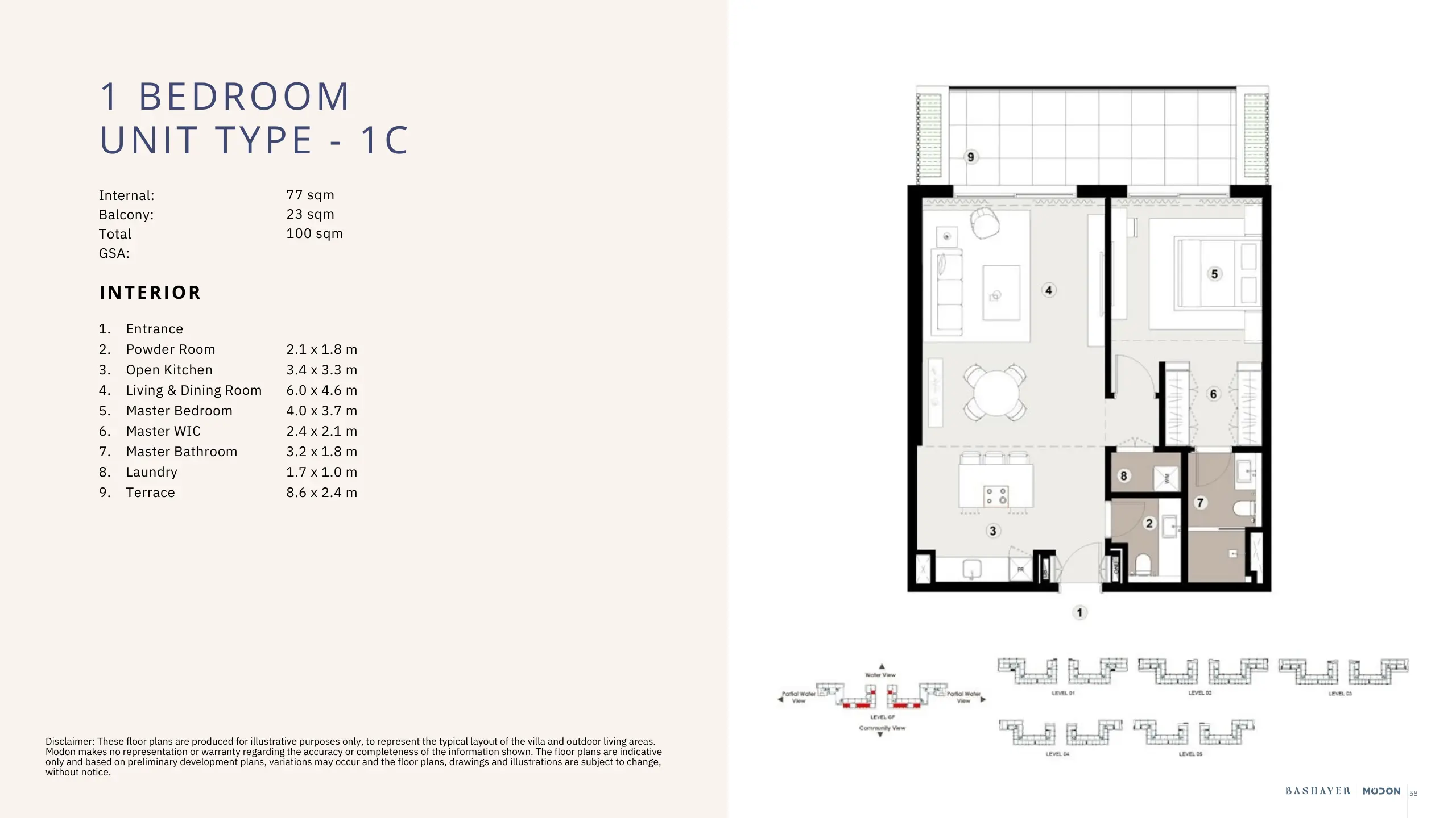 - 1–4 bedroom apartments within the Bashayer Residences cluster