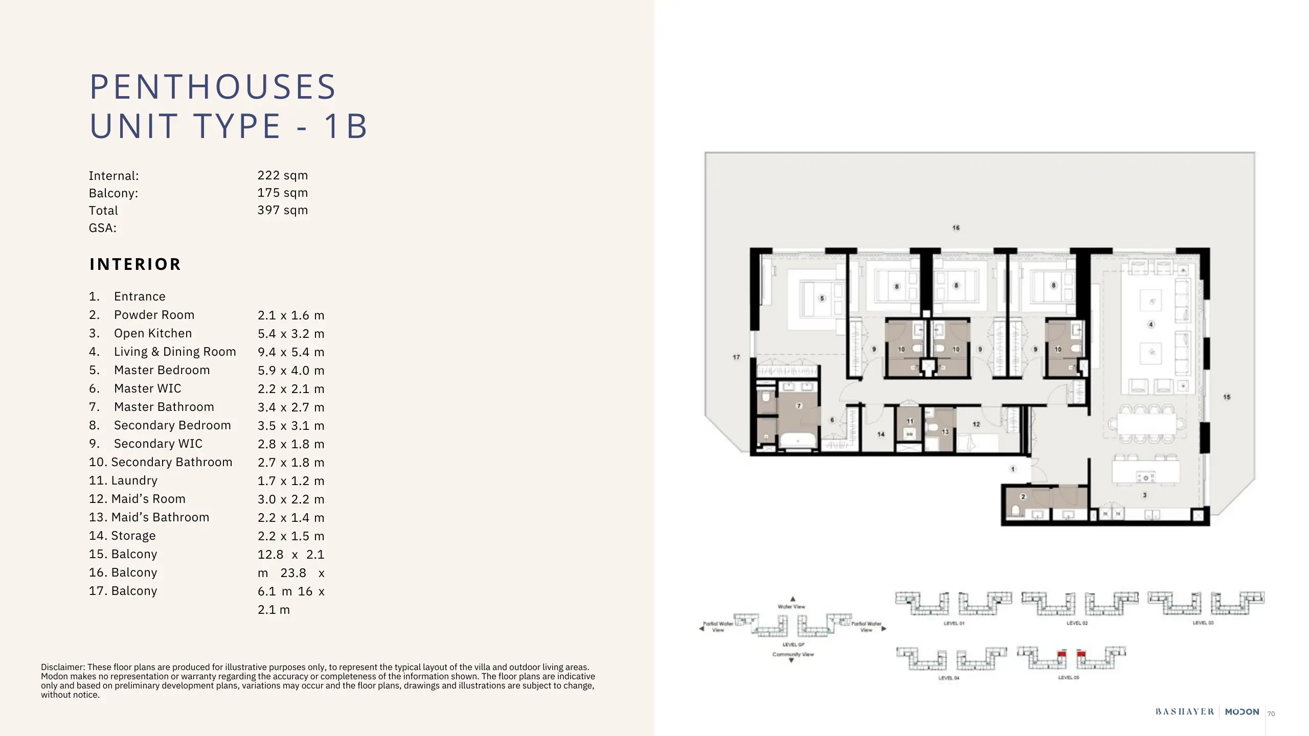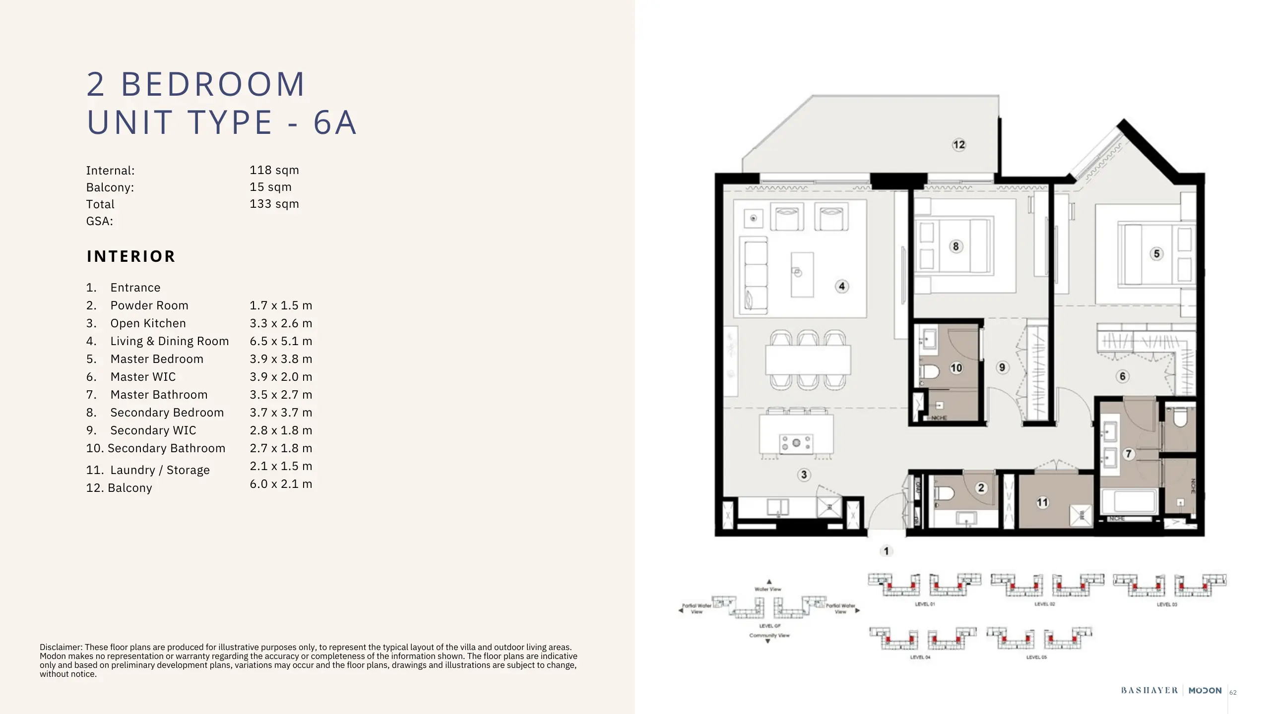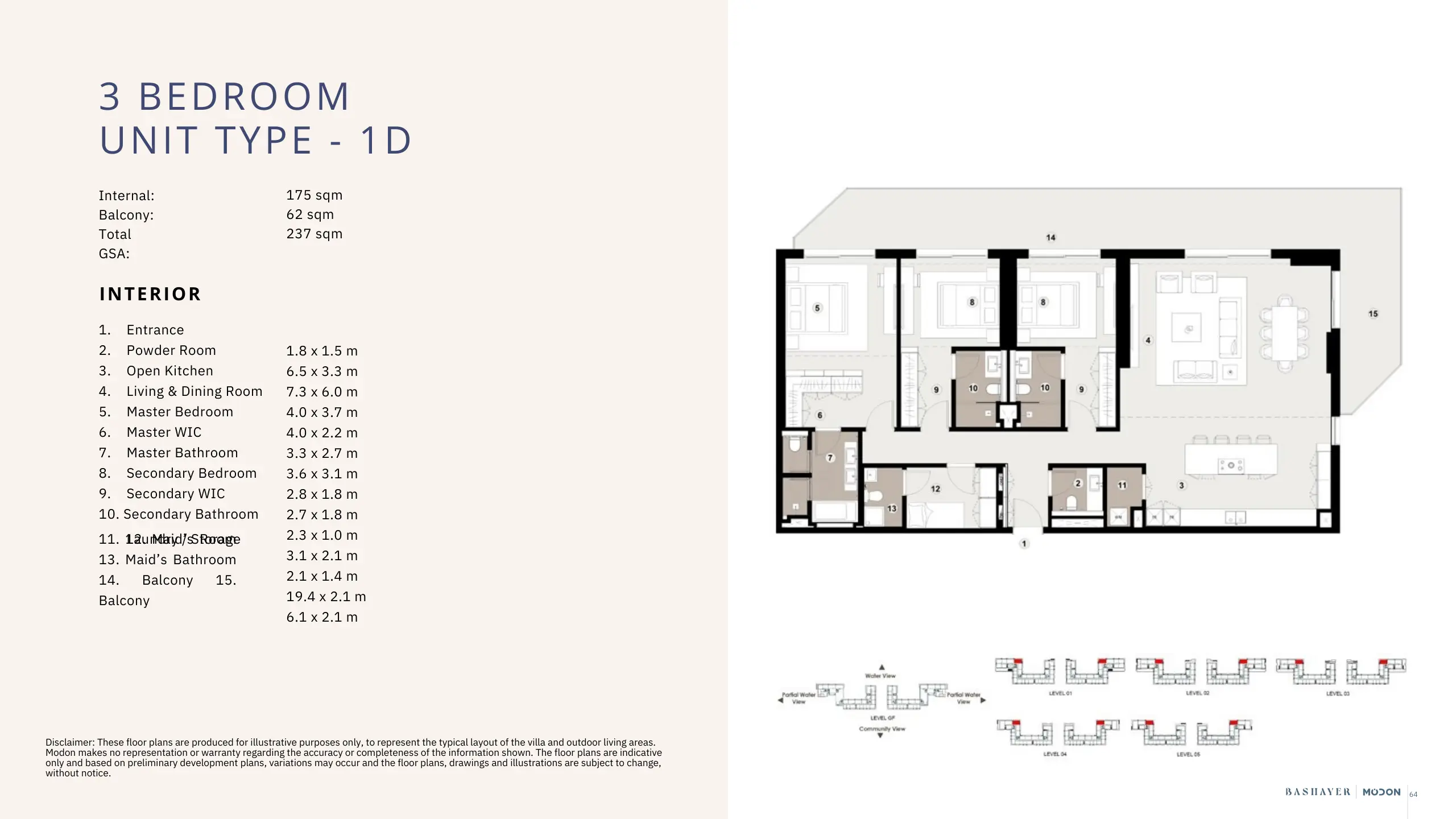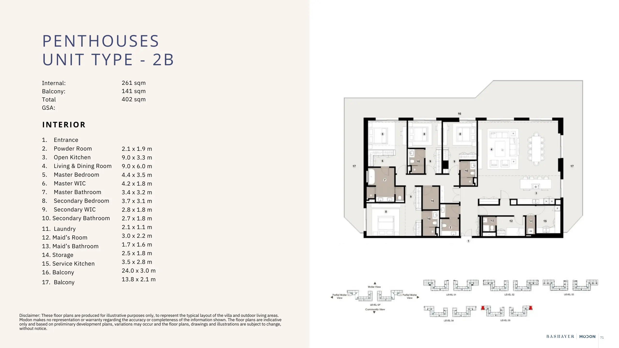 - 1–4 bedroom apartments within the Bashayer Residences cluster